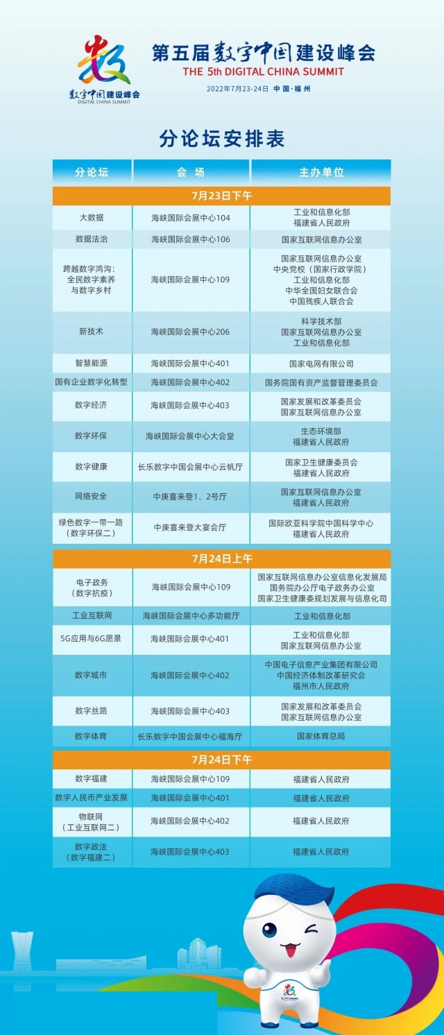 7月23日至24日,第五屆數字中國建設峰會分論壇將在福州舉行。本屆分論壇共有10個國家部委、2家社團組織、2家央企、2家機構以及福建省政府參與主辦,吸引中國聯通、中國電信、華為等多家行業領軍企業參與,全力服務和促進數字生態交流合作、數字經濟發展壯大。