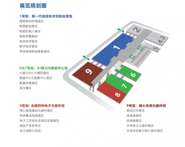 9號(hào)館:基礎(chǔ)電子館:電子元器件、儀器儀表及材料、電子生產(chǎn)制造設(shè)備、特種電子、IP及IC設(shè)計(jì)及解決方案展區(qū)