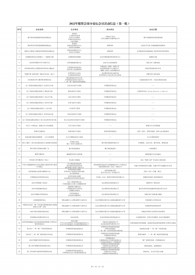 2022年服貿會部分論壇會議活動信息(第一批)