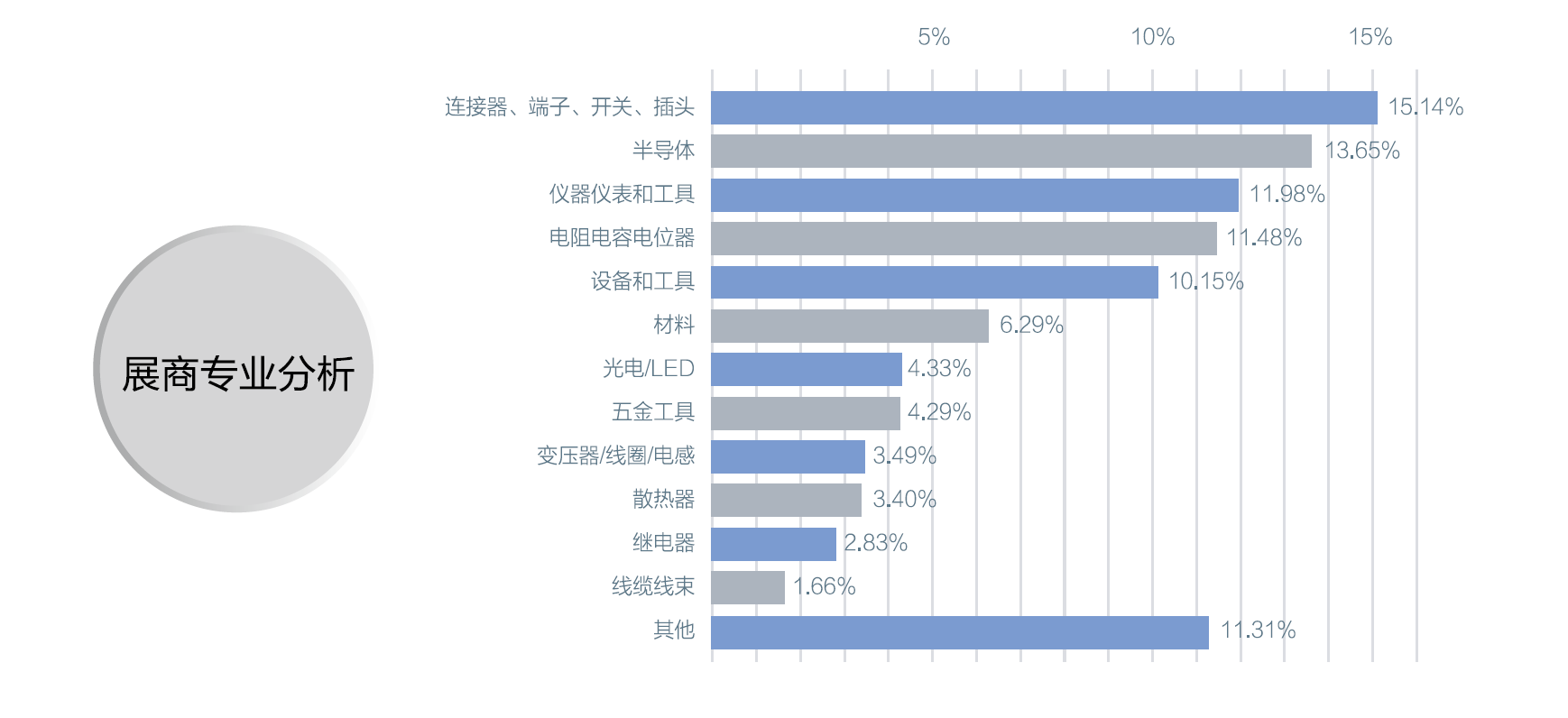 半導體分立器件隸屬于半導體行業(yè)的兩大分支(集成電路和分立器件)。而我們的展商中包含原材料供應商、分立器件芯片制造商、封裝材料制造商,二三極管生產(chǎn)商,特種元件及傳感器生產(chǎn)及分銷商等。他們的應用領(lǐng)域涵蓋消費電子、計算機及外設(shè)市場、網(wǎng)絡通信、電子專用設(shè)備與儀器儀表、汽車電子、LED顯示屏以及電子照明等多個方面。我們每年將著重邀請以上相關(guān)行業(yè)人士來現(xiàn)場參觀采購。截止目前,半導體分立器件參展企業(yè)60余家,展位多達120余間。