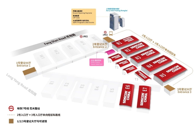 ?SEMICON/FPD China 2025的登記大廳為展館1號入口廳、2號入口廳和3號入口廳,三個入口廳均可進館。