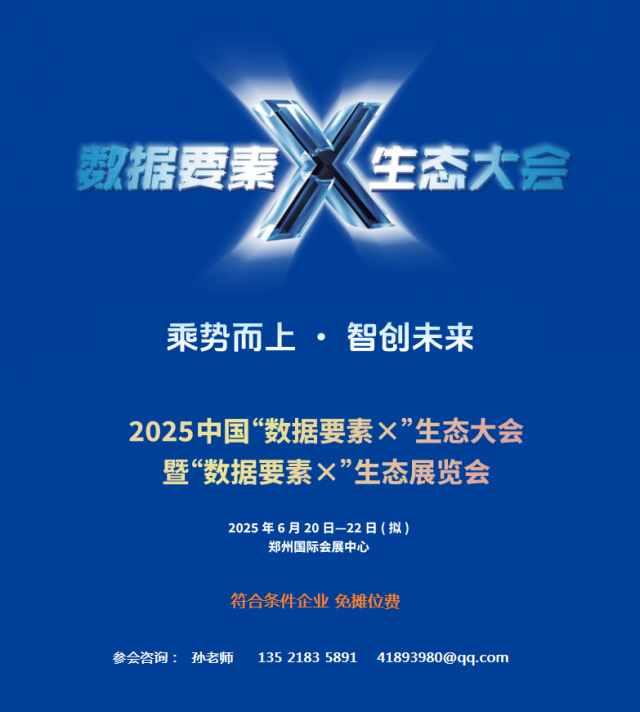 由國家數據局、河南省人民政府指導,中國電子信息產業集團有限公司、中國經濟改革研究基金會、鄭州市人民政府、河南省數據局等單位主辦的2025“數據要素 ×”生態展覽會,計劃于6月20日至22日在鄭州國際會展中心盛大舉行。