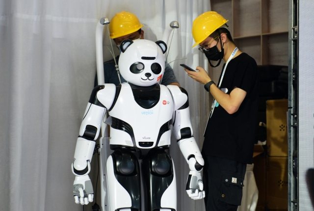大大的眼睛,靈活的四肢、通紅的身子……正在展會(huì)上“閑逛”的是一臺(tái)四足機(jī)器人,主要用于工業(yè)場(chǎng)所巡檢工作。它的外形像一只機(jī)械狗,身上背著攝像頭和雷達(dá)傳感器,可以完成上樓、上坡等動(dòng)作,還可以幫助人們?cè)谖kU(xiǎn)的場(chǎng)所進(jìn)行巡檢,也可用于地鐵巡邏。它不光工作努力,賣萌也是一把好手,遇到觀眾就興奮起來(lái),前腳歡快地邁著小碎步,像一只看到主人興奮得開(kāi)始原地跺腳的小狗。在一個(gè)高高的圓形玻璃展臺(tái)中,一臺(tái)白色的仿人機(jī)器人正在大步奔跑,“噠噠噠……”它邁著穩(wěn)健的步伐,擺動(dòng)著結(jié)實(shí)的手臂,發(fā)出規(guī)律的腳步聲。據(jù)介紹,這是一臺(tái)大型仿人服務(wù)機(jī)器人,一邊的玻璃上還細(xì)致地標(biāo)注出了它的個(gè)人信息:身高1.45米、體重77千克,而且多才多藝,會(huì)彈琴、下棋、打太極、寫(xiě)字畫(huà)畫(huà)、動(dòng)作模仿。作為服務(wù)機(jī)器人,它可以完成按摩、端茶倒水等家居服務(wù),還能自主操控冰箱、咖啡機(jī)、吸塵器等家電。