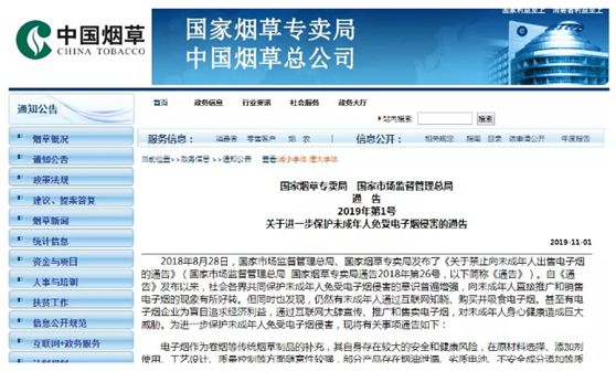 今年11月1日,國(guó)家煙草專賣局、國(guó)家市場(chǎng)監(jiān)督管理總局對(duì)外發(fā)布了一則禁令,要求不得向未成年人銷售電子煙,不得通過(guò)互聯(lián)網(wǎng)銷售電子煙,不得通過(guò)互聯(lián)網(wǎng)發(fā)布電子煙廣告。電子煙網(wǎng)絡(luò)禁令一發(fā)布,各大電商平臺(tái)和網(wǎng)絡(luò)店鋪紛紛開(kāi)始下架電子煙,一時(shí)有關(guān)電子煙的各種消息在網(wǎng)上傳播開(kāi)。
